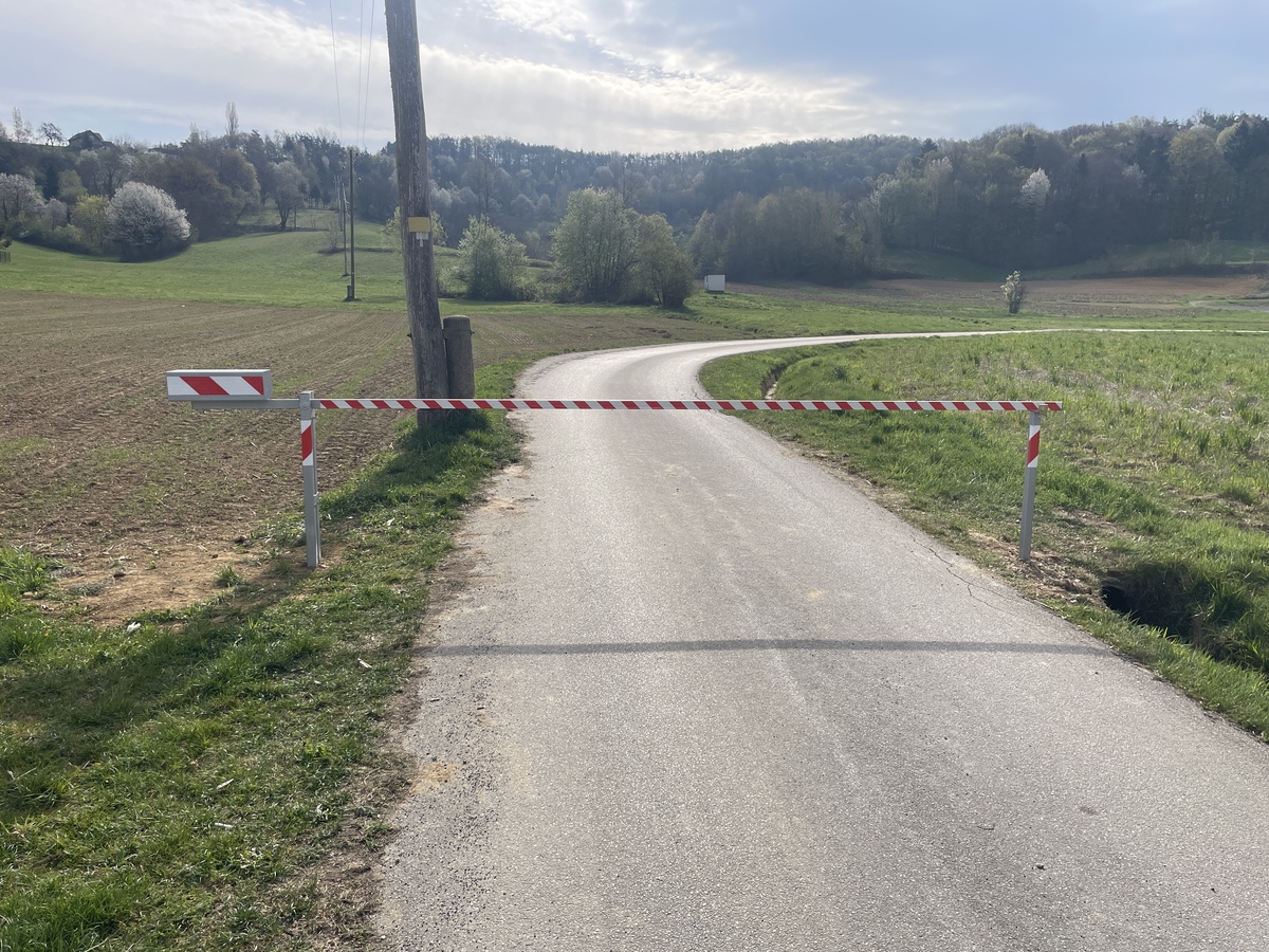Zapornica je zaklenjena. Lastniki zemljišč oziroma obdelovalci, ki za dostop do svojih zemljišč uporabljajo navedeno cesto, lahko ključ prevzamejo na upravi Občine Kuzma, in sicer ob podpisu ustrezne izjave.